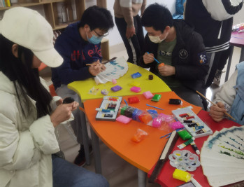此次活动包括“古风国扇”和“开心灵之花,塑真实自我”两个部分。其中“古风国扇”部分让同学们在空白折扇上作画,把自己的所思所想在折扇上展现出来,让同学们在感受中华传统文化魅力的同时放松身心。“开心灵之花,塑真实自我”活动通过泥塑DIY的形式来表达自己的内心想法,释放心理压力。活动通过别开生面的文化与艺术的碰撞的形式展开,同学们最终制作的书画和泥塑作品有的充满童趣、有的书法功底扎实,大家相互点评作品,活动现场欢声笑语,热闹活跃。