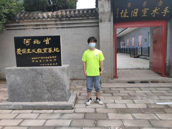 实践队员孙懋喆来到沧州烈士陵园缅怀革命先烈。在这里,实践队员看到纪念碑碑身北侧刻有“青沧战役纪念碑”毛体描金字,碑身南侧刻有青沧战役碑文。认真阅览了青沧战役展览馆收藏珍贵历史照片和图片159幅,学习了张隐韬、赵博生、黄骅、马本斋、李桐铭和牛氏三杰八名烈士的生平事迹。通过学习,实践队员受到了深刻的爱国主义教育,“春风送花表哀思,青松滴翠寄深情。无限哀思无限情,英雄墓前祭英雄”,瞻仰着高大的烈士纪念碑,表示作为新时代大学生,要为实现中华民族伟大复兴的中国梦贡献青春力量。