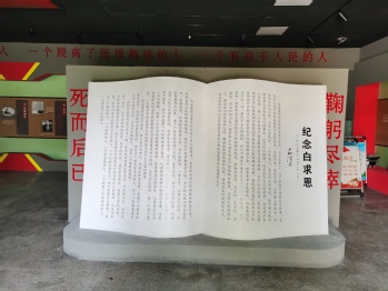 实践队员王子武寻访了河间市白求恩手术室旧址纪念馆。实践队员认真阅读了白求恩同志的生平事迹、纪念白求恩立碑书、看了白求恩同志当年用过的手术器械、医药箱等文物资料,通过学习,对白求恩同志这位国际主义战士的光辉事迹有了深入的认识,也对“毫不力己、专门利人,对工作极端负责,对技术精益求精,对同志极端热忱”——白求恩精神有了深刻感悟。实践队员表示,白求恩同志不远万里率医疗队来到中国的抗战前线,他以崇高的国际主义精神和真正共产主义者的态度,把自己的一切奉献给了人类最壮丽的事业。时代在发展,白求恩精神历久弥新,作为新时的青年要学习白求恩精神,做一个高尚的人,一个纯粹的人,一个有益于人民的人。