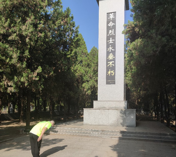 实践队员李上上来到了登封市革命烈士纪念馆缅怀革命先烈。登封市革命烈士纪念馆(烈士陵园)坐落在登封市区中岳大街西段,始建于1979年10月,占地面积约3万平方米,馆内松柏苍郁,花木飘香,清新雅致,庄严肃穆。实践队员进入纪念馆,放眼望去,映入眼帘的是纪念创立豫西抗日抗日根据地英勇献身的先烈们的“革命烈士永垂不朽”长形纪念碑,三进高台两侧各建有一座八角亭,南亭为先烈皮定均司令员、徐子荣政委的纪念碑,北亭为记载登封人民革命斗争纪念碑。在烈士纪念大厅实践队员认真学习了皮定均、徐子荣两位先烈领导豫西抗日先遣支队英勇抗日的英雄事迹、历史照片和珍贵遗物;在革命史陈列室实践队员学习了王敬臣等多位烈士的500余幅历史照片和图片。最后,实践队员来到墓碑前深深鞠躬缅怀先烈。通过学习,实践队员感受到老一辈共产党人不屈不挠、艰苦奋斗的革命精神,表示自己要弘扬革命传统,追寻红色记忆,学习革命先烈的精神,在学习生活中奋发图强,不负革命先烈的流血牺牲。