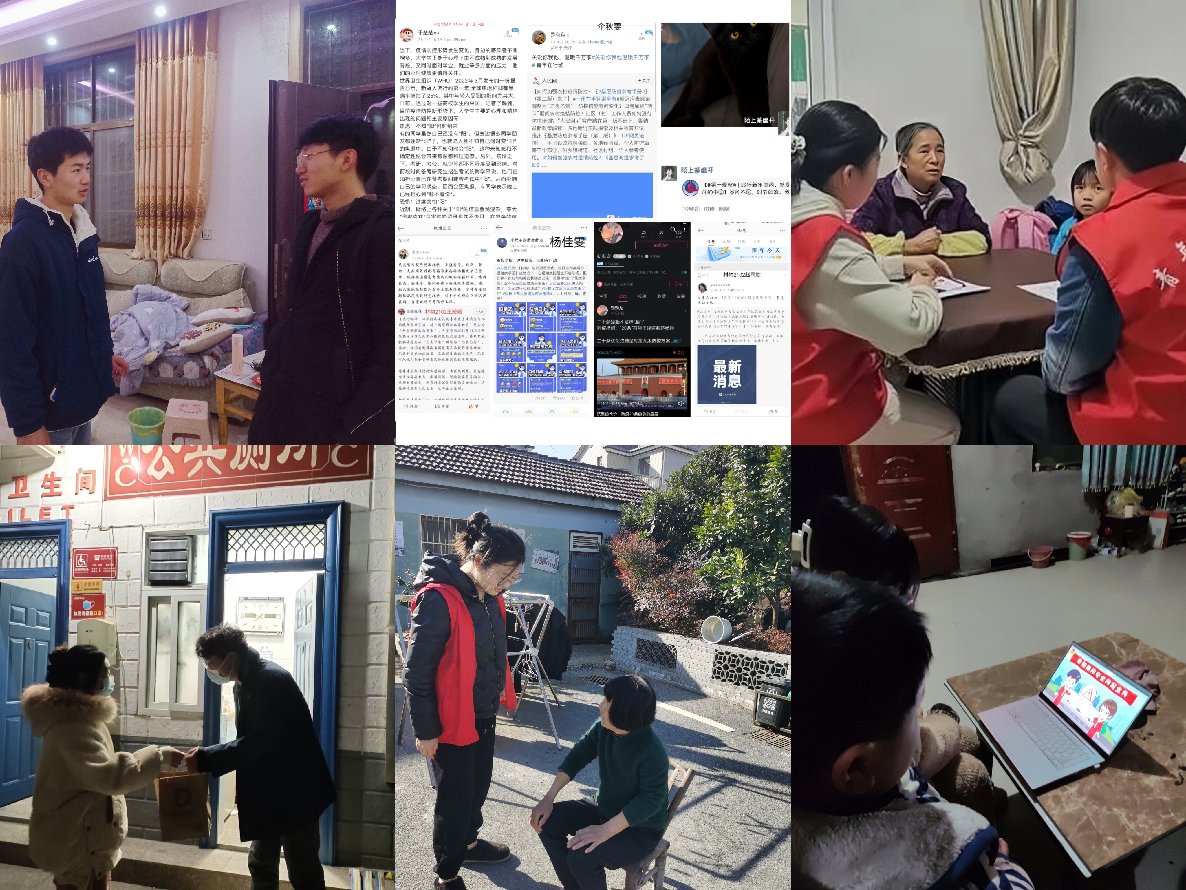 实践活动中,返乡学子积极加入当地志愿服务队,参与慰问基层工作人员,送上精心准备的慰问品,向社区居民宣传党的二十大精神,开展法治宣传和防范电信诈骗宣传;来到社区给孤寡老人送温暖,帮助老人整理衣被,打扫卫生,为他们送去浓浓的真情;开展青少年安全教育,发放安全知识手册,普及安全出行,防范意外伤害、安全用火用电等知识,了解学习生活情况,赠送了图书、水果等爱心物资。在微博等新媒体平台发布防疫知识、党的政策,利用新媒体传播的广泛性,引导群众了解党的政策,提高对党的认识,向群众宣传防疫知识、心理健康相关知识。