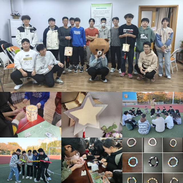 手作时光,温暖加怀。“灯笼之旅”活动中,同学们精心制作了各具特色的灯笼,表达了自己内心深处的思考与愿望,探索自我、宣泄情绪、挖掘出自己更多的潜能。“合作新实践,展望‘心’未来”开展系列小游戏“你画我猜”“主题接力”“逢7过”“抢凳子”,锻炼团队协作能力,在“歌唱青春”比赛中展示自我、绽放青春,既收获了快乐,又在快乐中不断充实自我。“编制心语结,传承手工艺”活动中,同学们充分发挥想象力和创造力,根据线材、珠子等材料,设计独特的手串。通过学习手串编制的手工艺技巧和方法,分享编制的心得体会、经验和感受,促进同学之间的合作和交流,增进团队合作精神。