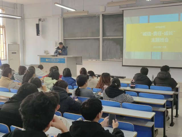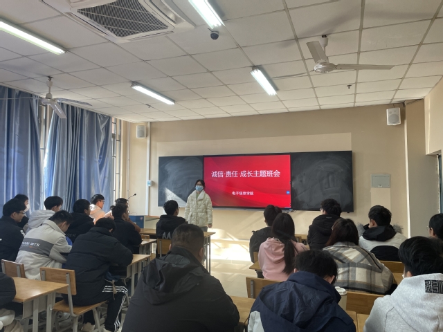 为进一步增强大学生诚实守信和责任担当意识,助力学生成长成才。近日,电子信息学院各年级组织开展“诚信·责任·成长”主题班会。