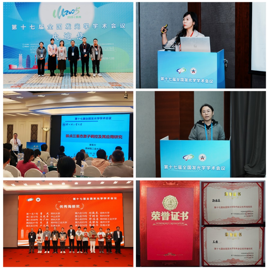 第十七届全国发光学学术会议由中国物理学会发光分会主办,郑州大学承办,郑州轻工业大学、南阳师范学院及北京精品文化传媒有限公司共同协办,会议吸引了来自全国高校、科研院所和企业的专家﹑学者700余名,院士﹑长江学者﹑国家杰青等高层次人才踊跃参会。电子信息学院通过此次参会,深化了与国内外同行的学术联系,显著拓宽了师生科研视野。以此为契机,学院将持续推进与各高校及科研机构的协同合作,强化前沿探索与学科交叉,为提升科研创新力、服务产业发展注入新动能。