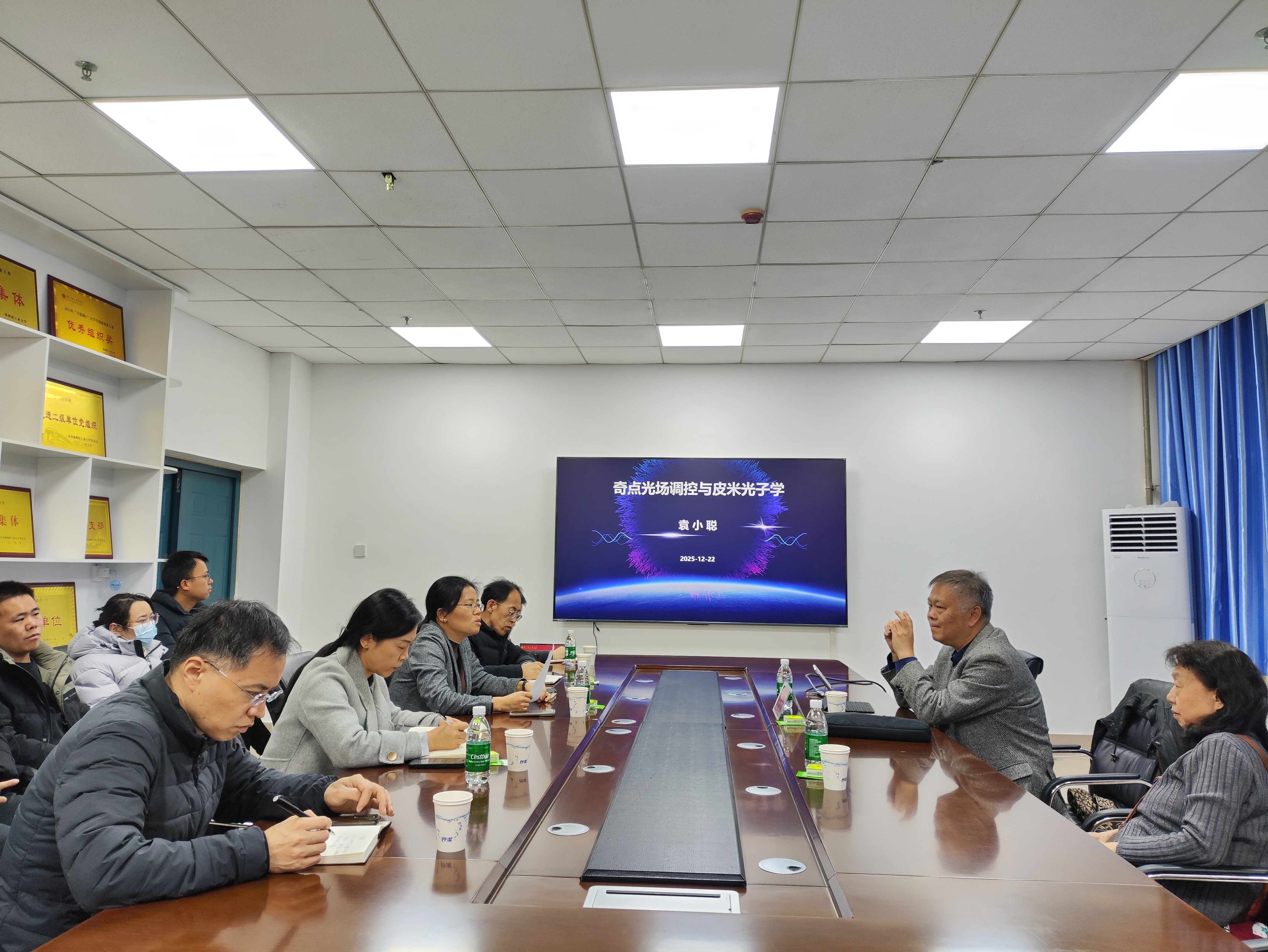 12月21-22日,应我校电子信息学院和河南省信息功能材料与传感技术重点实验室邀请,深圳大学袁小聪教授来校指导,并在四教楼310会议室作了题为“奇点光场调控与皮米光子学”的学术报告,相关方向教师参加了报告会,会议由姜利英院长主持。
