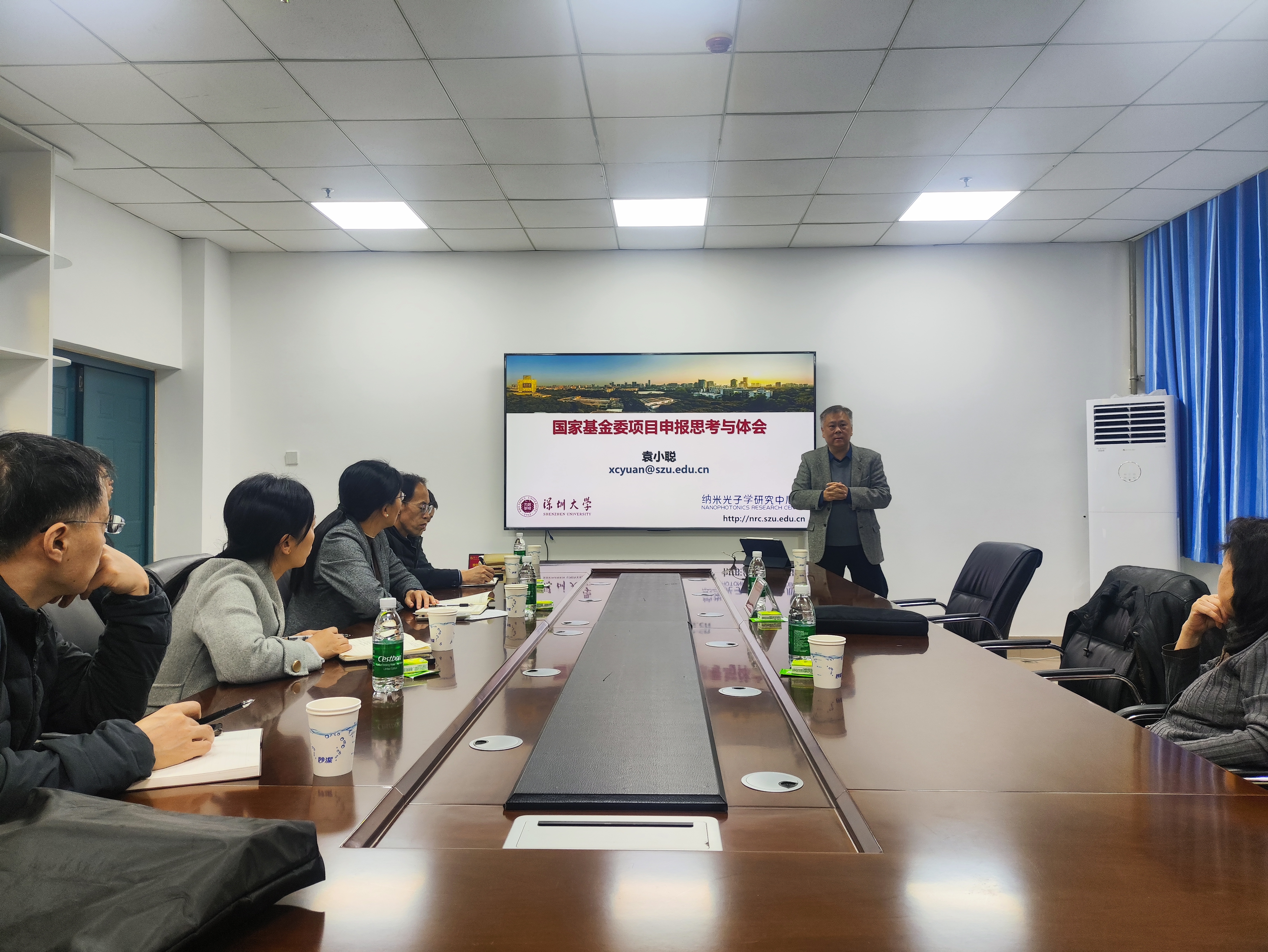 报告会上,袁教授首先介绍了皮米光子学发展概况,随后详细讲解了皮秒光子尺研究进展、光学斯格明子、横向相位奇点三维光学尺及其在光学传感、皮米精度定位和位移测量中的重要应用并介绍了近年来的最新研究成果。报告结束后,袁小聪教授与参会教师分享了自己在国基金申报中的思考和体会,分别从题目、摘要、立项依据、研究目标、关键科学问题、研究方案、可行性分析、技术路线、特色与创新之处等进行了详细分析,并针对老师们的具体问题提出了指导性建议。