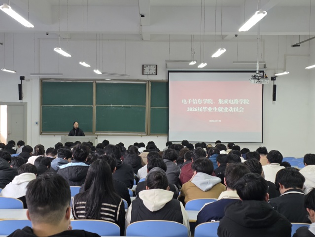 为帮助2026届毕业生准确把握春招机遇,树立科学就业观,3月10日下午,电子信息学院、集成电路学院在工程楼108教室召开2026届毕业生就业动员会。学院党委副书记王静、就业专职辅导员王伟夙、毕业班辅导员及全体2026届毕业生参加。