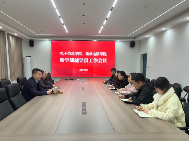 3月12日中午,电子信息学院、集成电路学院在四教楼305会议室召开新学期辅导员工作会议。学院党委书记赵阳、党委副书记王静及全体辅导员参加。